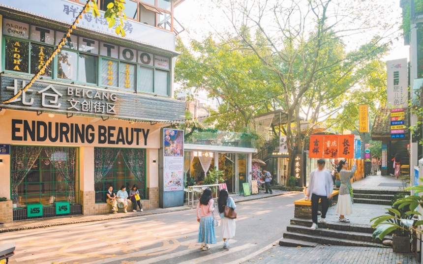4月14日,江北区塔坪片区的青砖老墙下,北仓文创街区创始人李传波正取设想师们研讨“空间留白”打算。300公里外,成都会玉林东特色街区(以下简称玉林东),商户展联盟会长曹滢取同事正筹备五一期间的非遗炊火坝坝宴。从沉庆开埠遗址的百年洋行到成都玉林街区的炊火巷陌,从解放碑地下环道的智能到“金角银边”的社区微更新……城市更新进入精细化时代,成渝两座城市的更新正发生协调的共振。