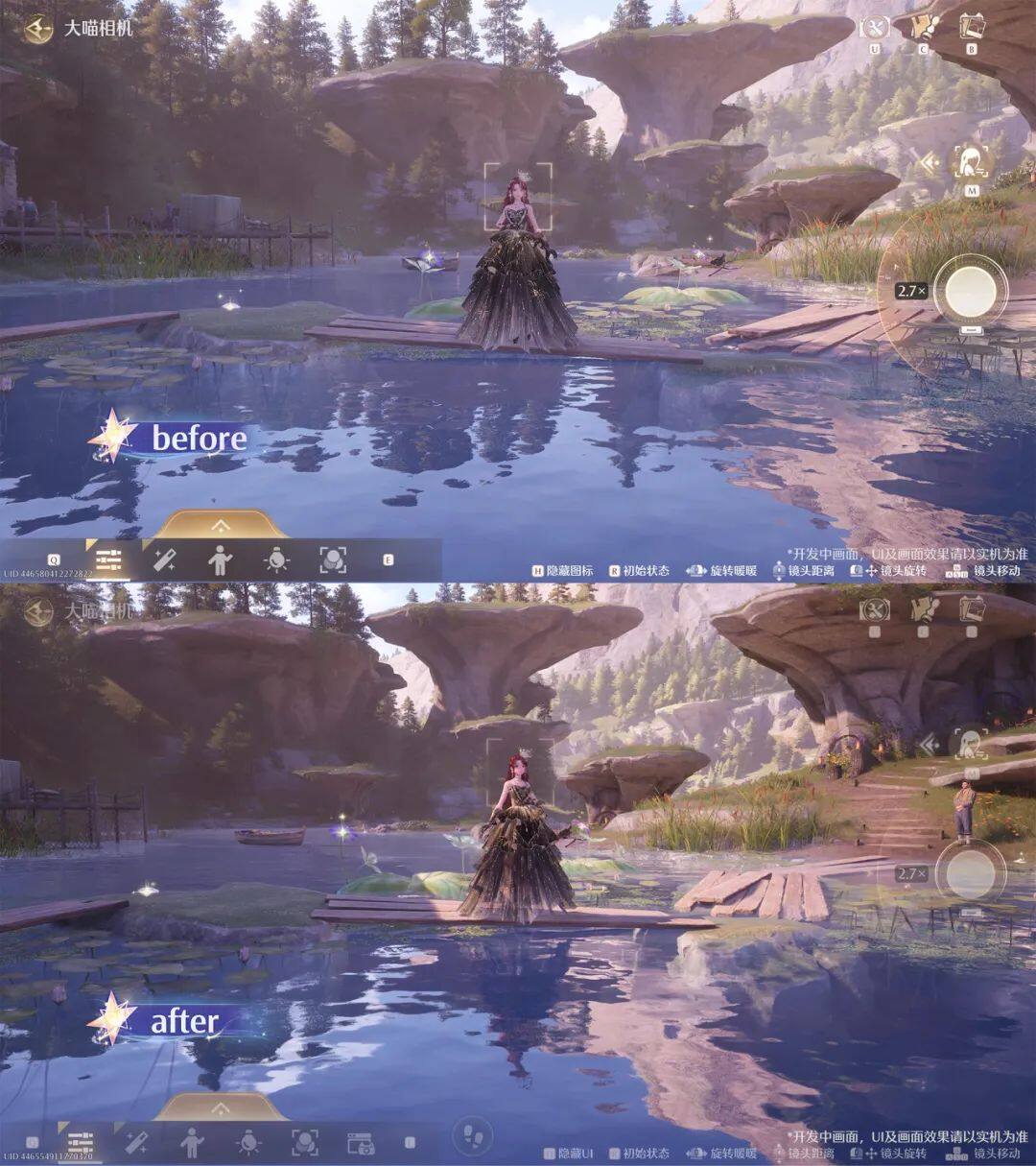 起首是摄影体验的优化,我们进行了光影改良和分辩率提拔,摄影界面的及时衬着结果,和最终成像质量都获得了提拔。