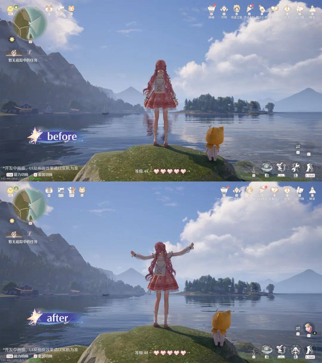 同时我们还对非光逃模式下的水面反射系统进行了迭代,正在精美和极致的画面设置下,优化了之前版本中前景反射的非常问题,使全体视觉结果愈加实正在天然。