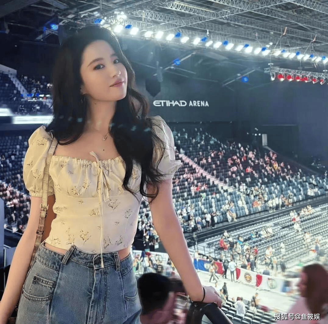 刘亦菲看赛车制型太美全场!穿短外衣+牛仔裤神